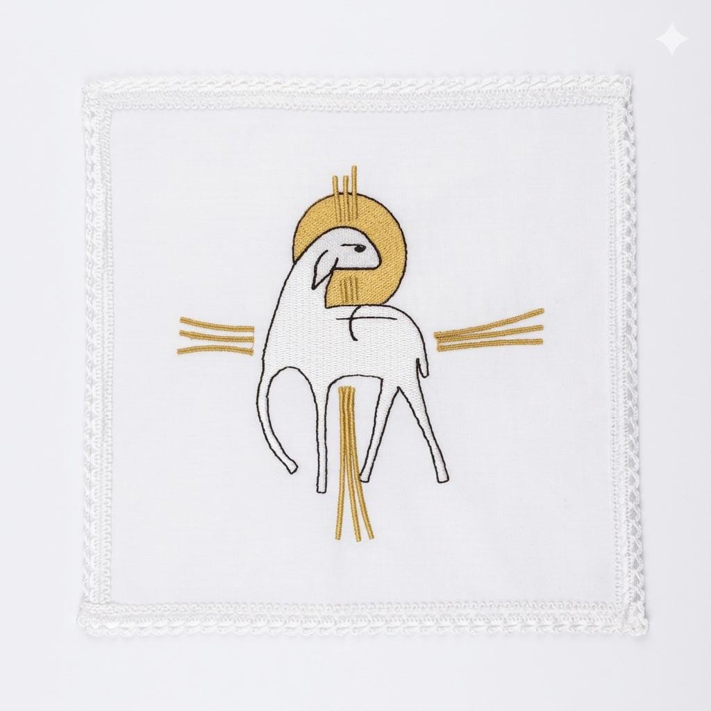 O Conjunto de Alfaias Cordeiro – Branco é uma peça de grande significado litúrgico, desenvolvida para valorizar a celebração eucarística com pureza, delicadeza e profundo simbolismo. A cor branca, tradicionalmente associada à alegria, à luz e à santidade, torna este conjunto ideal para solenidades, festas litúrgicas e celebrações especiais.