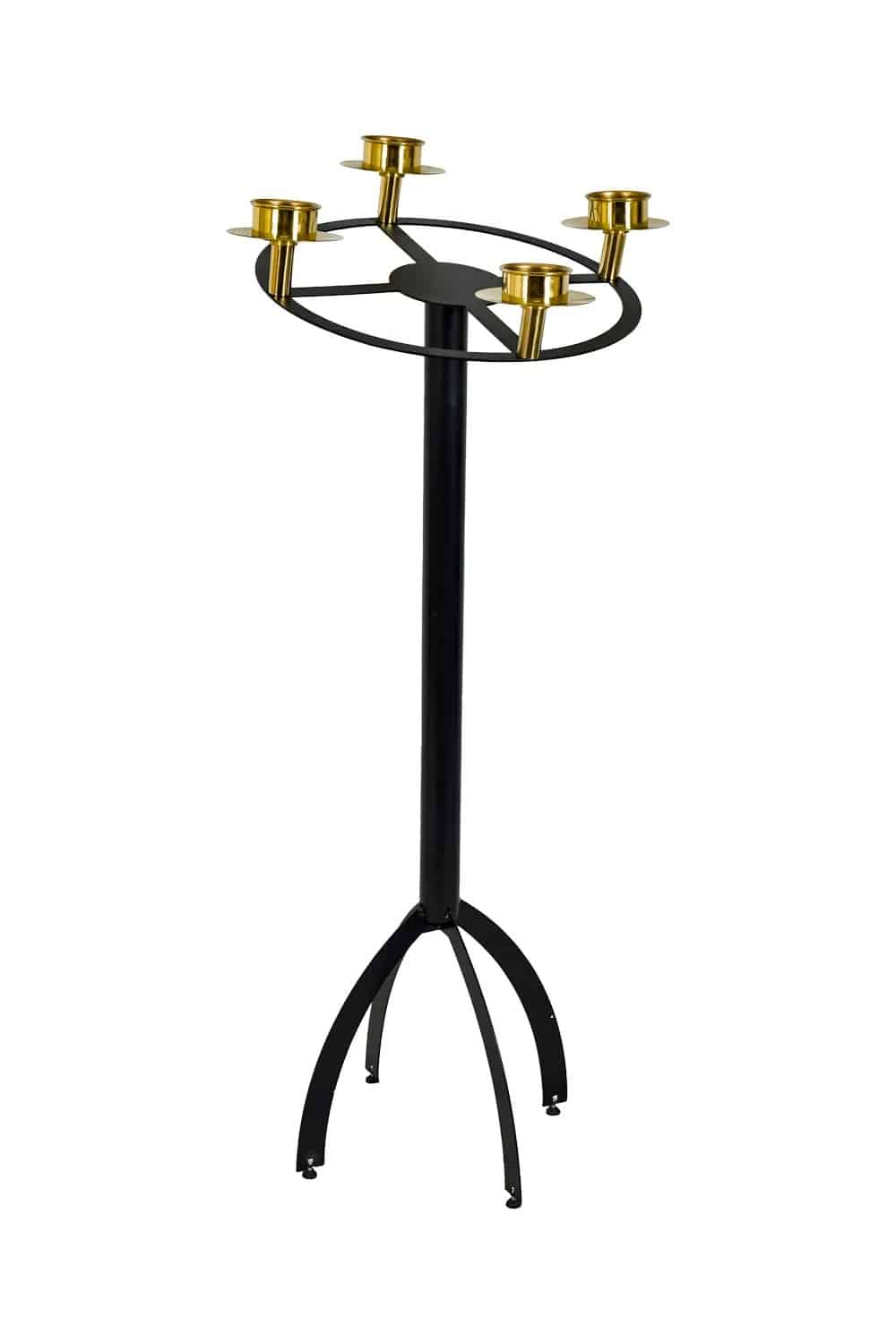 Coroa do Advento Mod 1 127cm. Em ferro, pintado de preto. Detalhe em banho dourado. Para Vela de 7cm de diametro