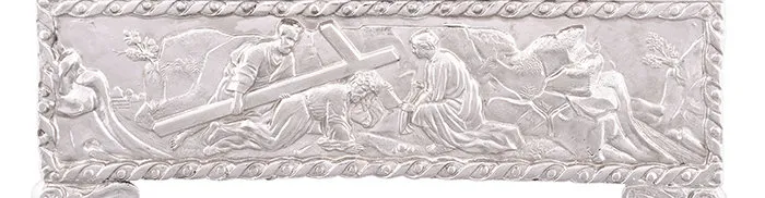 Em sua frente, tem-se os detalhes do caminho de Nosso Senhor até o Calvário.