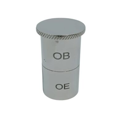Conjunto litúrgico composto por três vasos para os Santos Óleos — OC (Crisma), OB (Catecúmenos) e OE (Enfermos) — confeccionados em metal com fino banho prateado. Cada recipiente possui uma delicada cruz na tampa e gravação identificadora, garantindo praticidade e reverência no uso. Acompanha elegante estojo em madeira com fecho metálico.