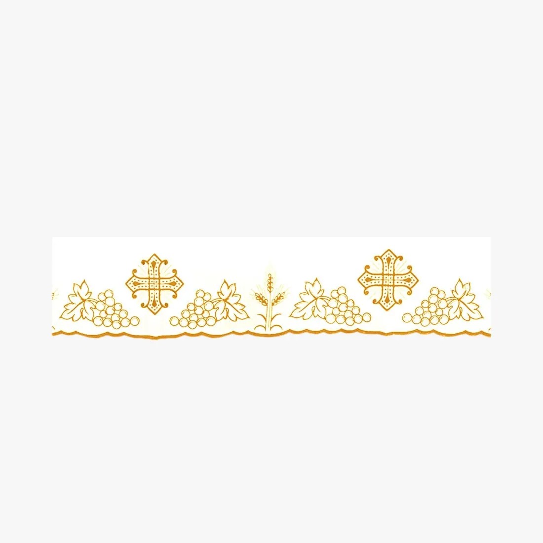 Renda para frente de altar (frontal de altar) confeccionada em tecido, impregnado e resistente a manchas, de alta qualidade. Totalmente bordado.
