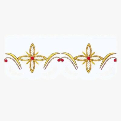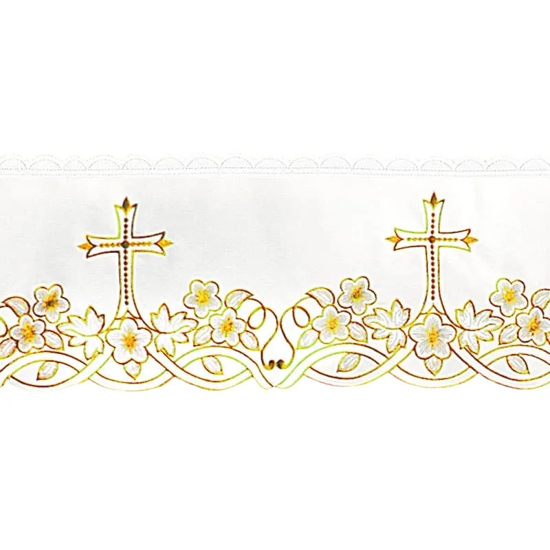 Com 290 cm de comprimento e 12 cm de altura, possui tamanho adequado para aplicação na parte frontal do altar, oferecendo uma ornamentação discreta, porém elegante.