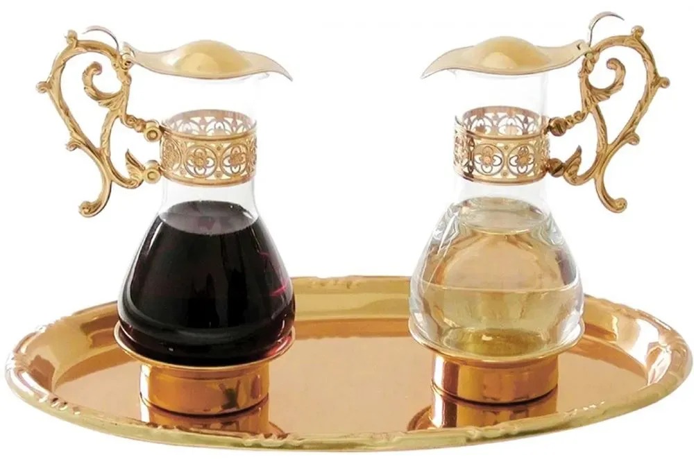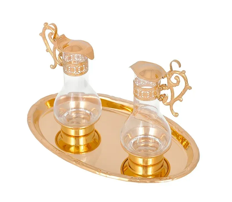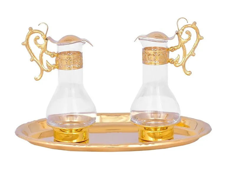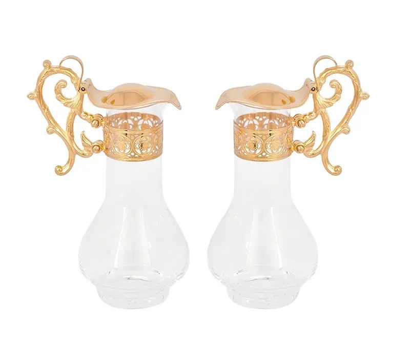 Galheteiro Clássico Dourado 5010. Produzido em latão dourado e vidro.