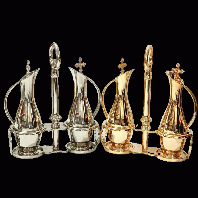 Galheteiro F201. Bandeja e jarrinhas em metal polido, banhado a níquel e com verniz especial incolor.