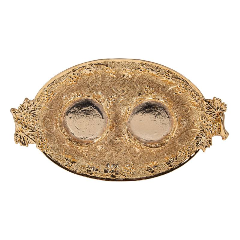 Acompanha bandeja com suporte central, que proporciona estabilidade, organização e praticidade no transporte até o altar. Seu design clássico harmoniza beleza, tradição e funcionalidade, sendo ideal para paróquias, capelas e comunidades.