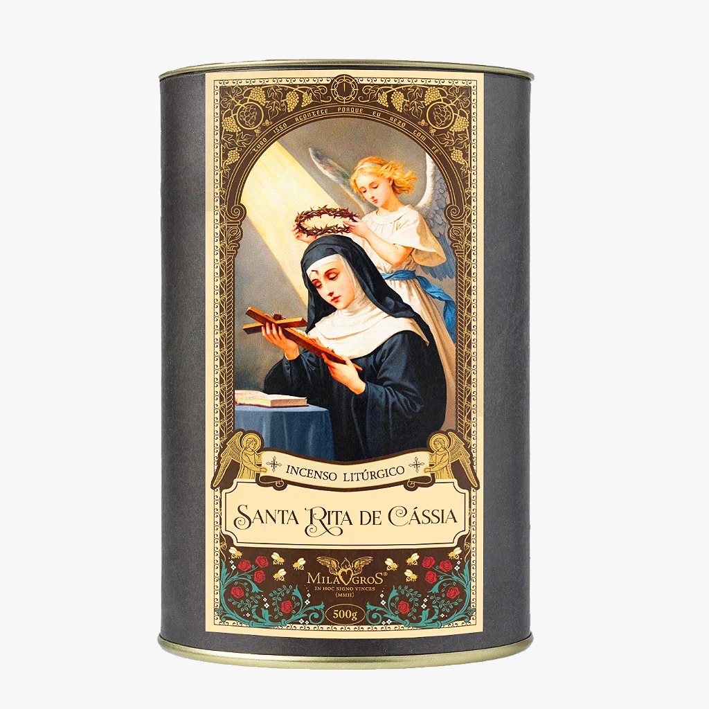 Barrica contendo 500g de incenso Santa Rita de Cássia.