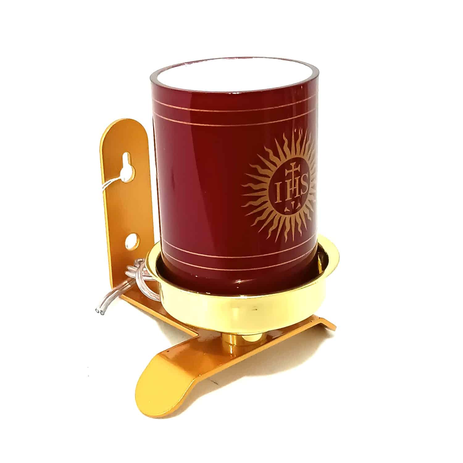 Lâmpada do santíssimo modelo 501 fabricada em metal com banho dourado, com copo de acrílico. Lâmpada disponível em 110 ou 220 volts.