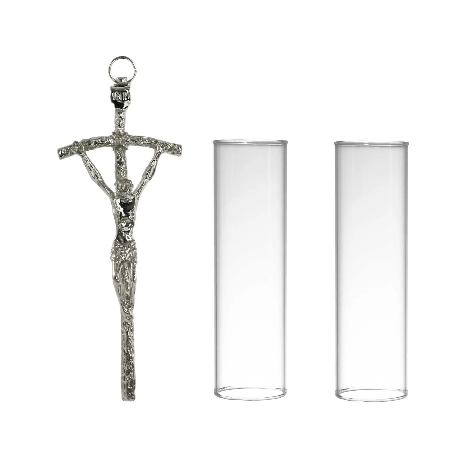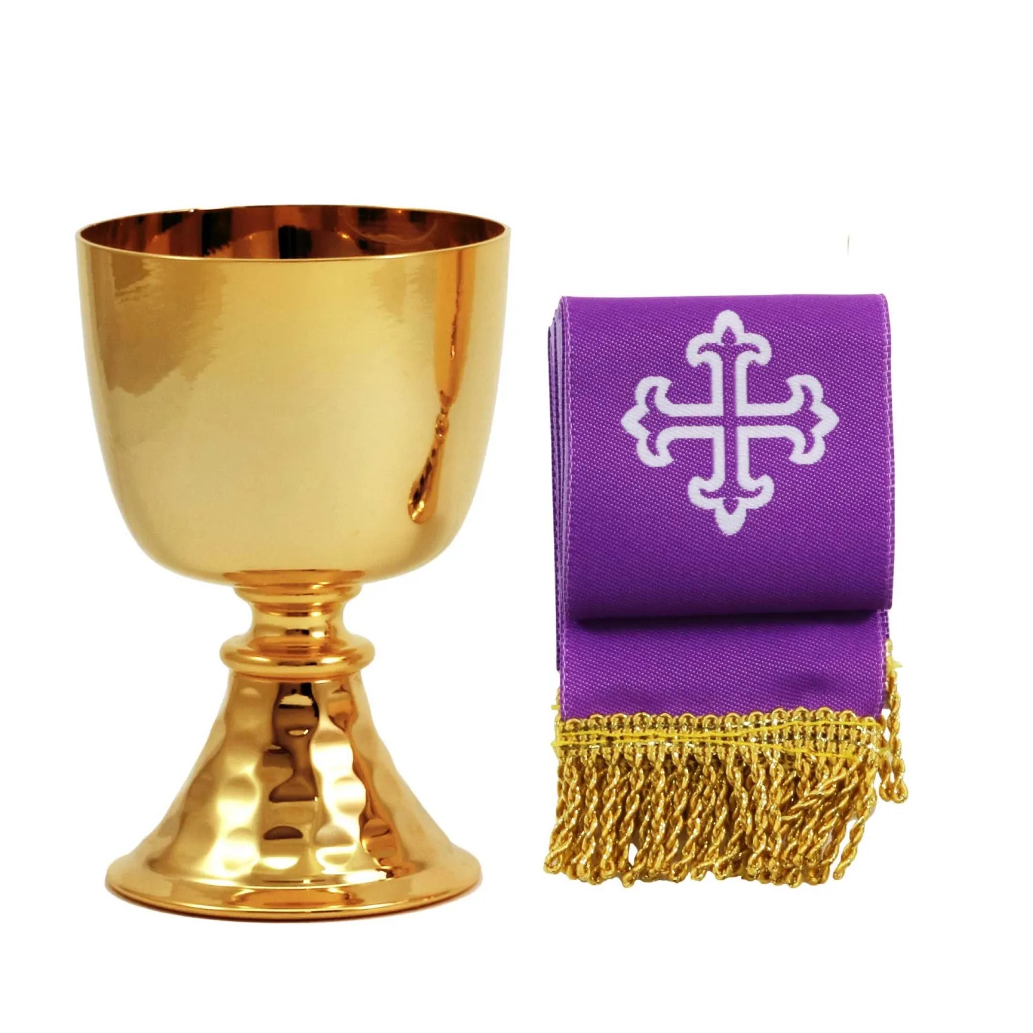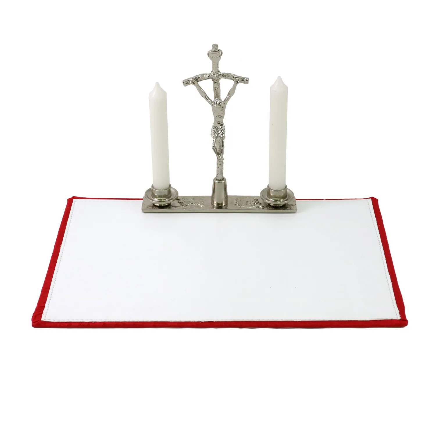 – Cruz Pastoral e velas de cera com castiçal de tecido combinando.