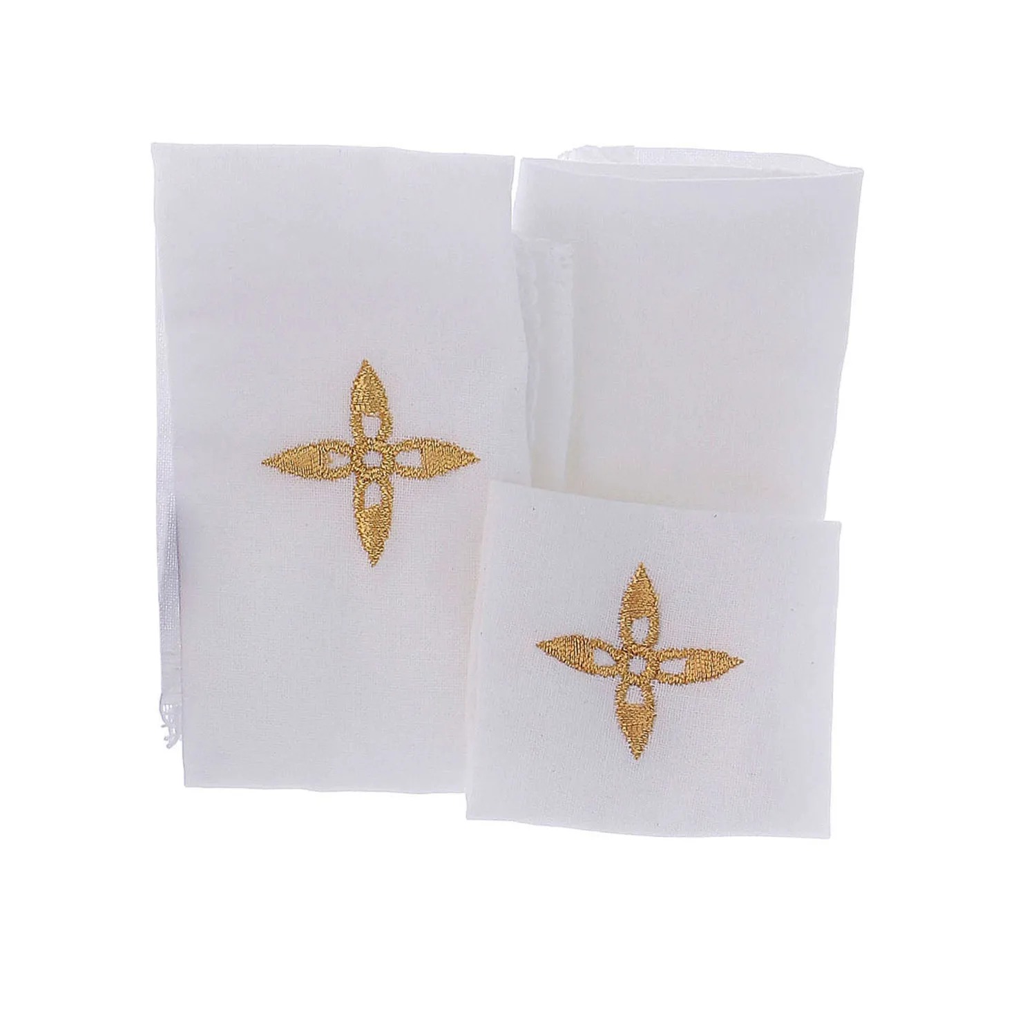 – Conjunto de 5 toalhas de mesa 100% algodão com cruz bordada em fios dourados.