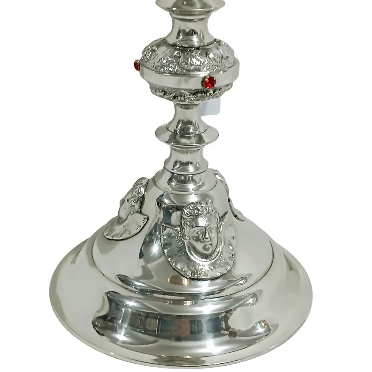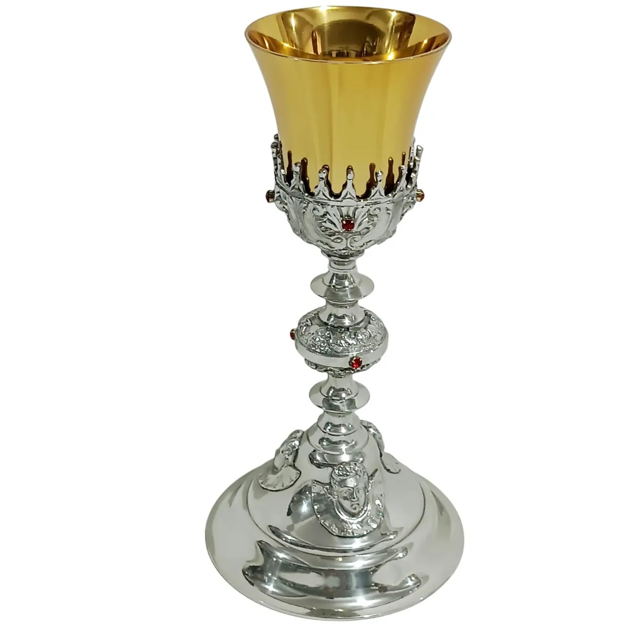 O Cálice F536 é produzido em estanho polido com banho dourado. Trabalhado em relevo na copa, miolo da haste e na base, com alguns anjos. Trata-se de um cálice imponente, podendo ser usado em capelas ou matrizes. Não acompanhado da patena.