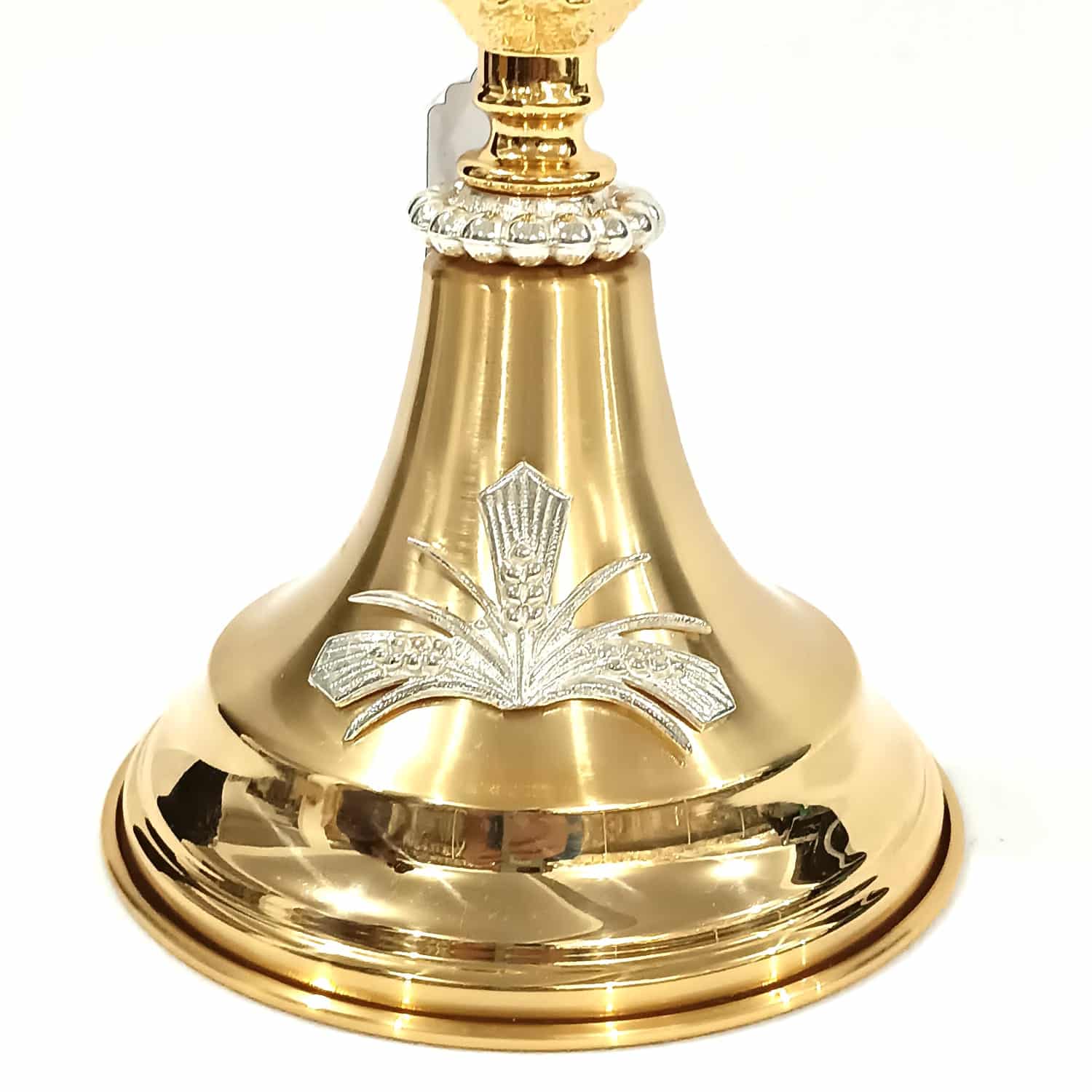 Ostensório. Ostensório feito em latão, com repuxo. Acabamento liso polido, com banho especial