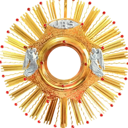 Ostensório lindo, estilo barroco, metal em cera fundida, com banho de ouro 24k e níquel. Peça única e artesanal.