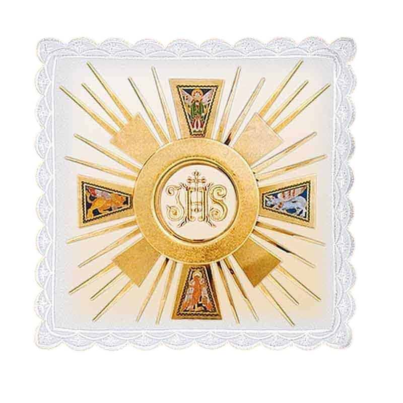 Com dimensões de 20 x 20 cm, oferece perfeita cobertura do cálice, garantindo proteção e reverência ao Santíssimo. Seu acabamento é refinado, com costuras firmes e bem definidas, proporcionando um caimento elegante e seguro.