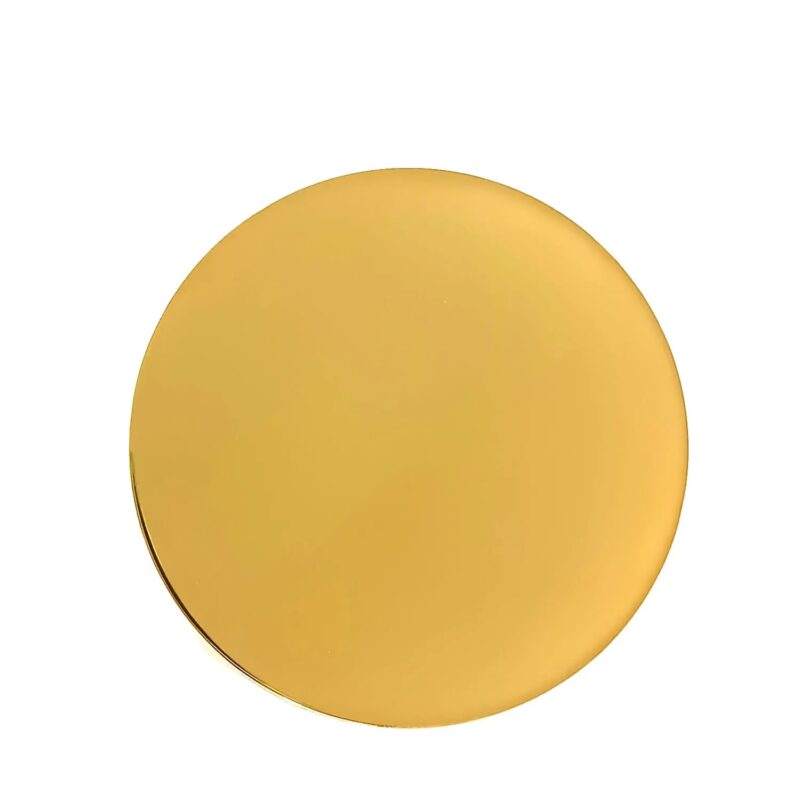 Patena Consagração Acrílico. Fabricado em metal, com banho niquelado. Dourado internamente. Tampa protetora de acrílico giratória.
