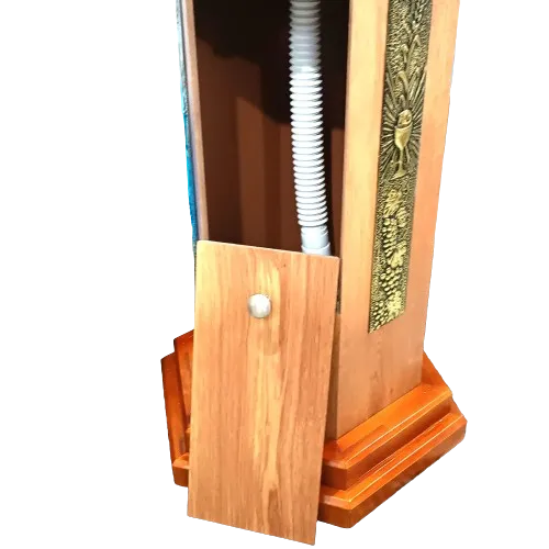 Pia Batismal em madeira com apliques de metal. Madeira cedro. Pia de seis lados, com porta para retirada da água