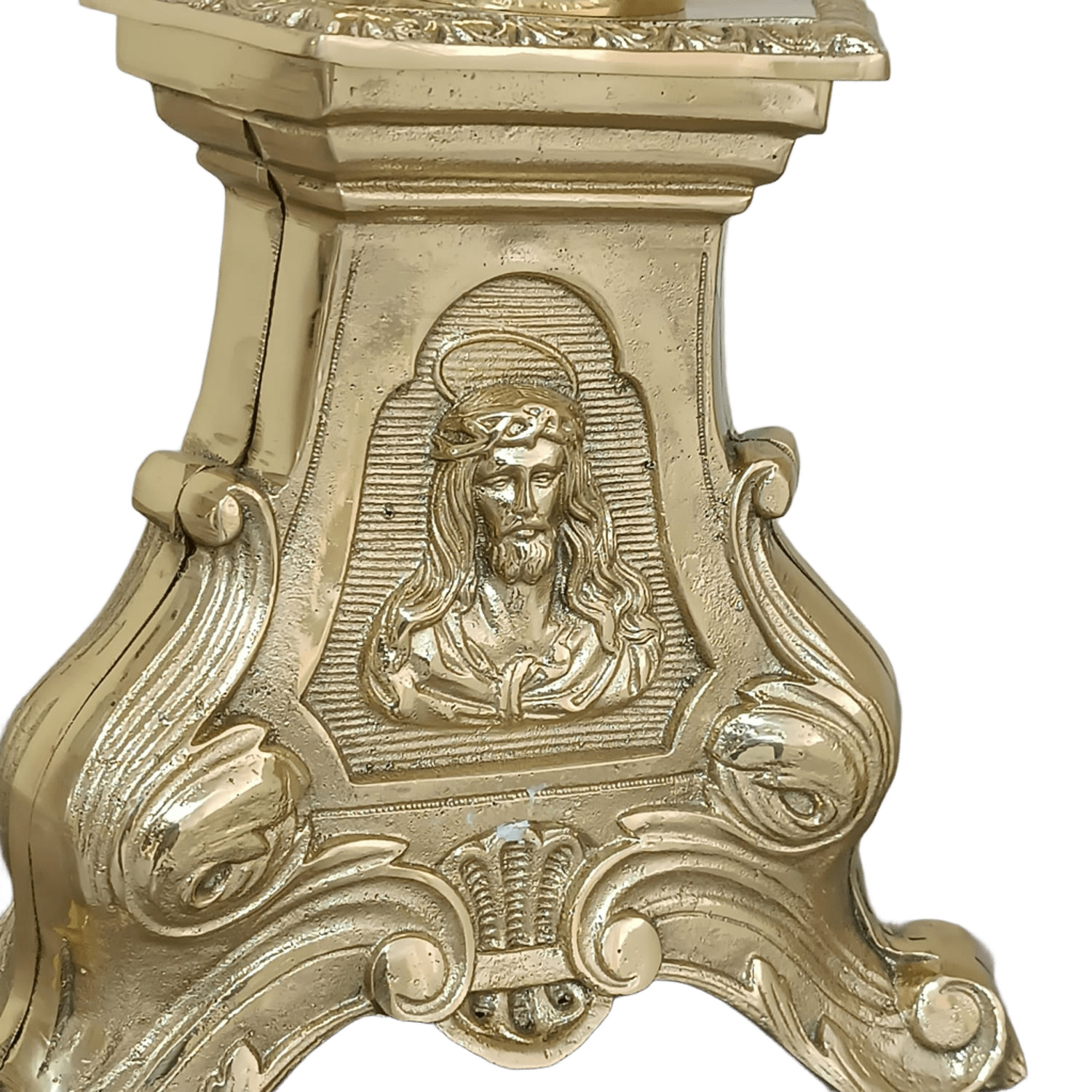 Indicado para celebrações litúrgicas, especialmente para o Círio Pascal, mas também pode ser utilizado como suporte para grandes velas em ocasiões solenes. Sua altura de 1,05m permite que a chama fique em uma linha de visão privilegiada para a assembleia.