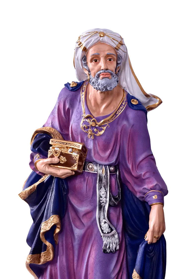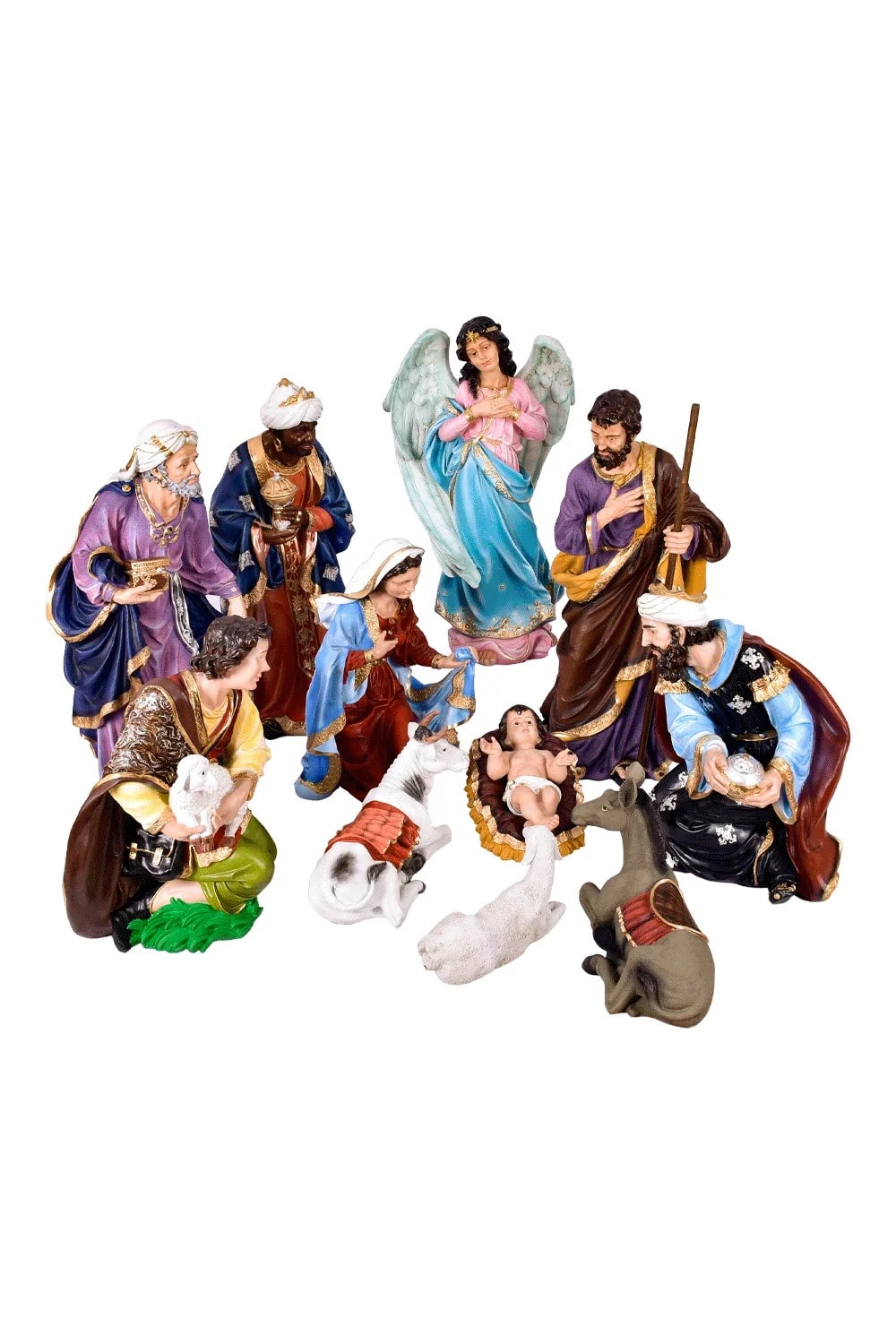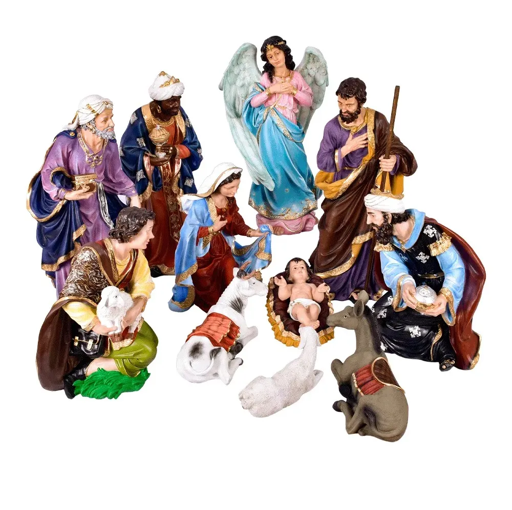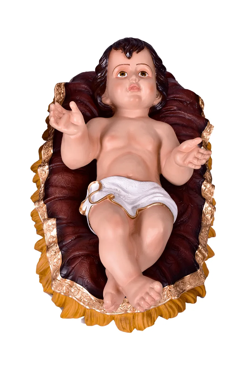 Presépio de 100* cm fabricado em resina natural e composto por 12 peças. Menino Jesus não é fixo na manjedoura.