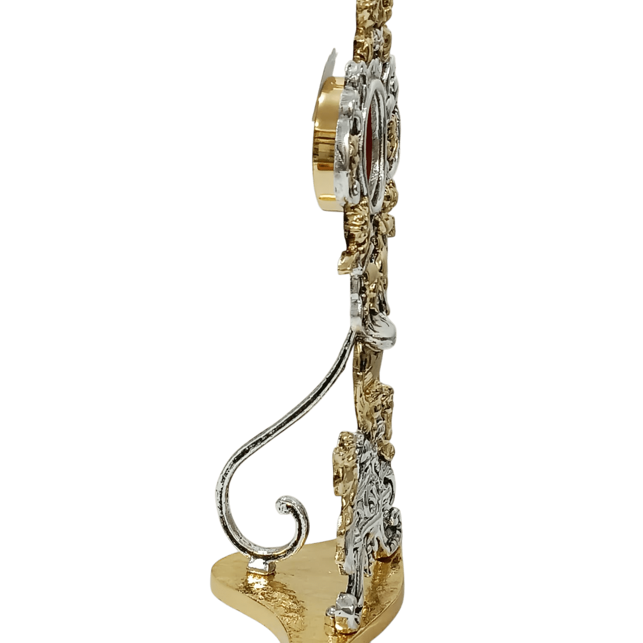 Material: O latão, um metal nobre e durável, serve como base para a peça, enquanto o banho em ouro e níquel confere um brilho intenso e proteção contra a oxidação.
