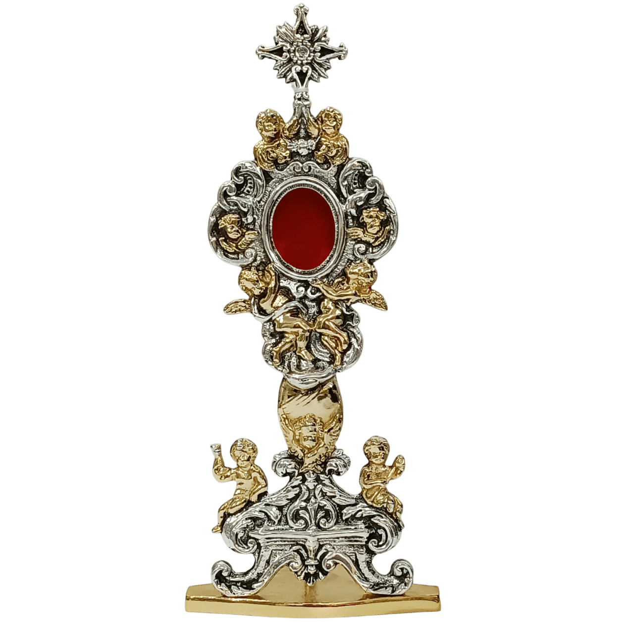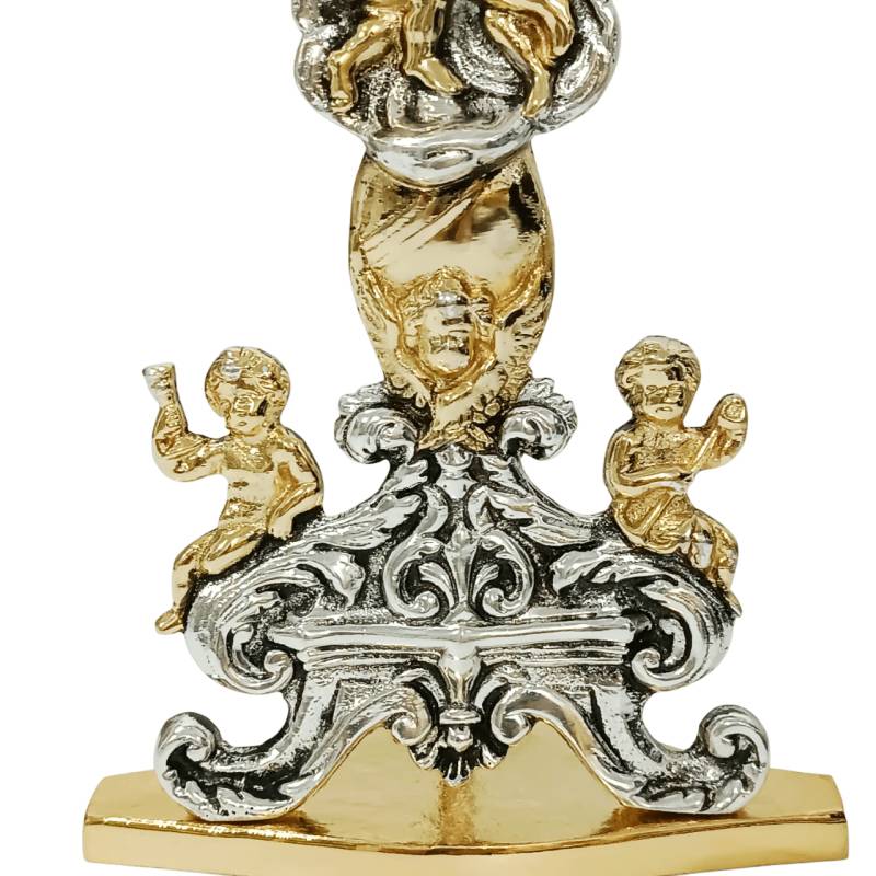 O relicário Anjos é uma peça verdadeiramente excepcional, que combina a rica tradição da ourivesaria napolitana com o requinte do design seiscentista. A fusão completa em latão e o banho em ouro e níquel conferem à peça um acabamento luxuoso e atemporal.