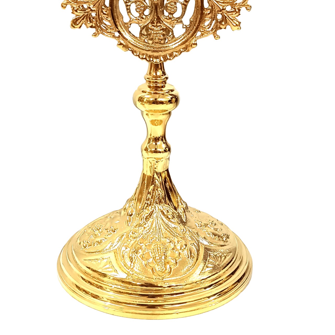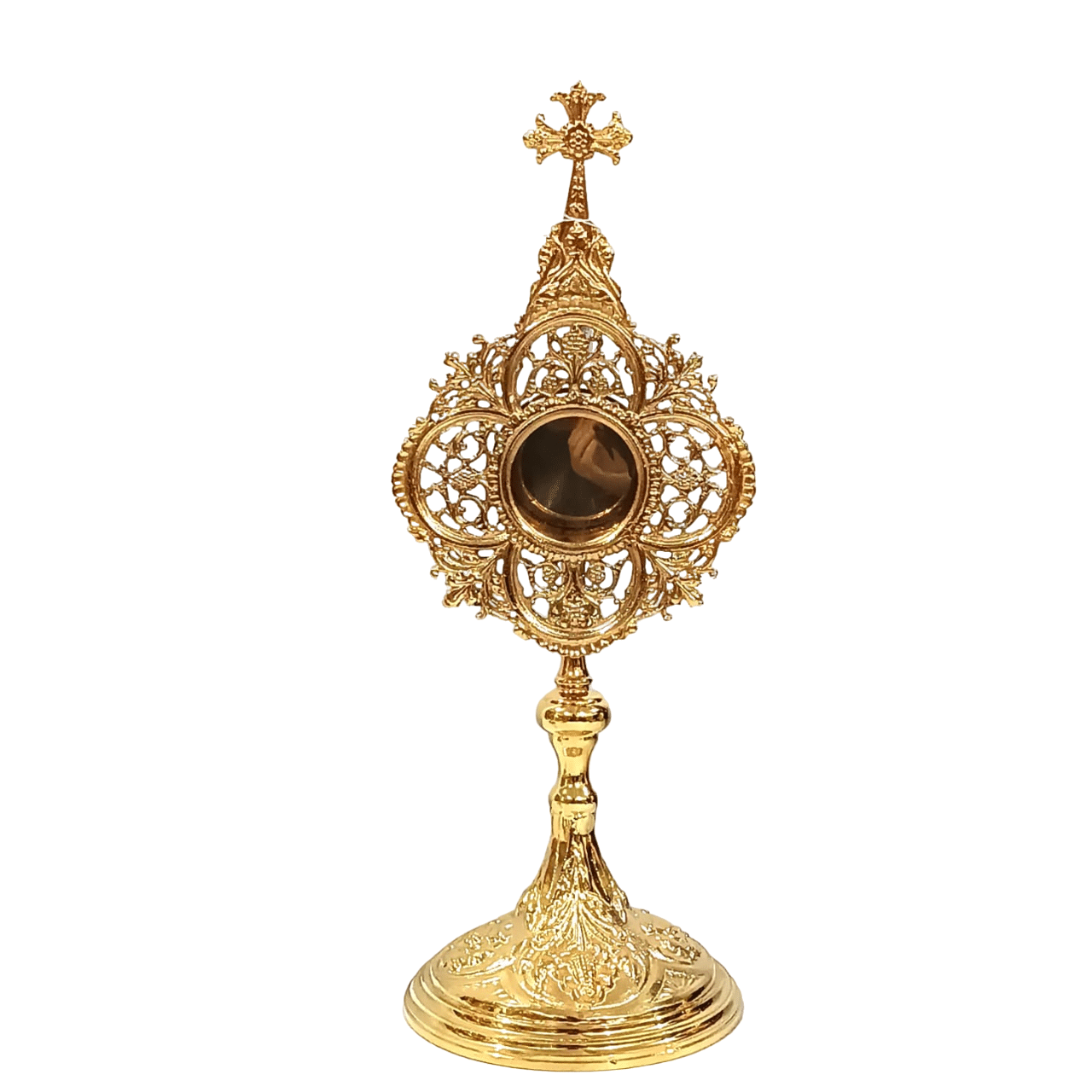 Relicário banhado a Ouro com belos e majestosos detalhes na base e por todos lugares.