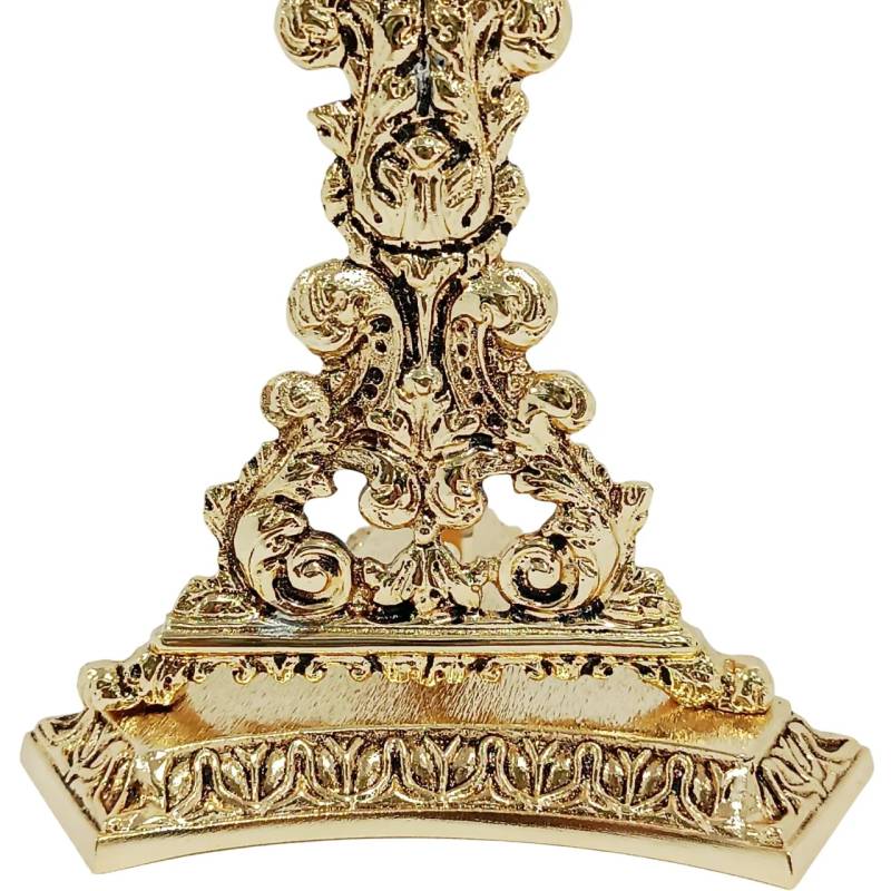 Obra de arte sacra confeccionada na Itália, no tradicional sistema de cera perdida, em metal fundido e artisticamente banhado a ouro 24k.