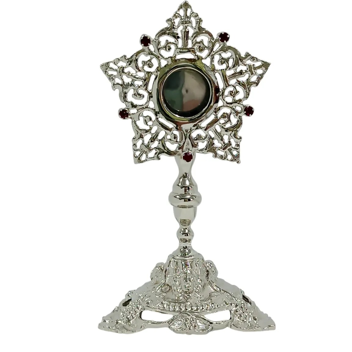 Inteiramente trabalhado à mão, é uma peça de grande riqueza de detalhes, ideal para a guarda e veneração de relíquias sagradas.