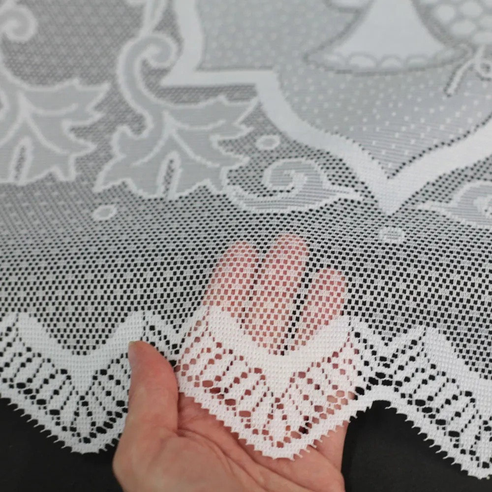 Nossa renda é feita com materiais de alta qualidade e é perfeita para confecção de toalhas de altar e paramentos litúrgicos, dando um padrão refinado e sofisticado às peças.