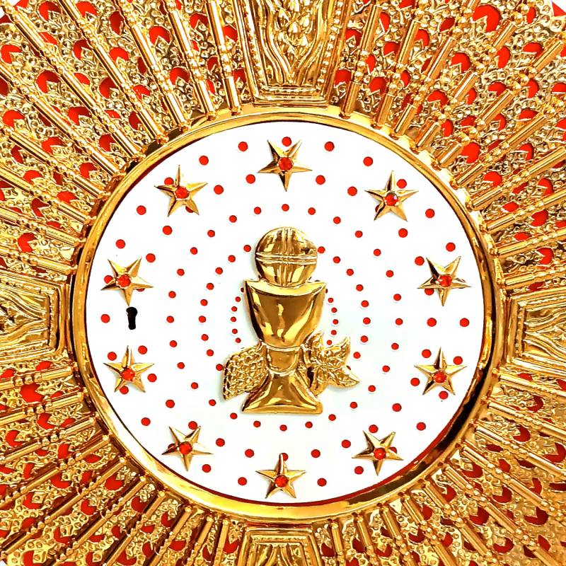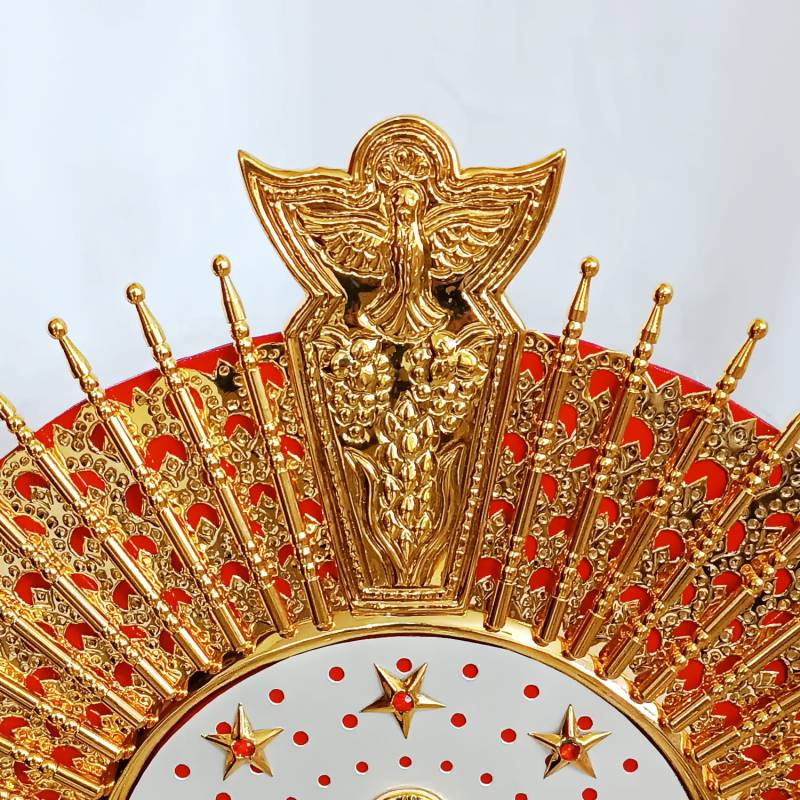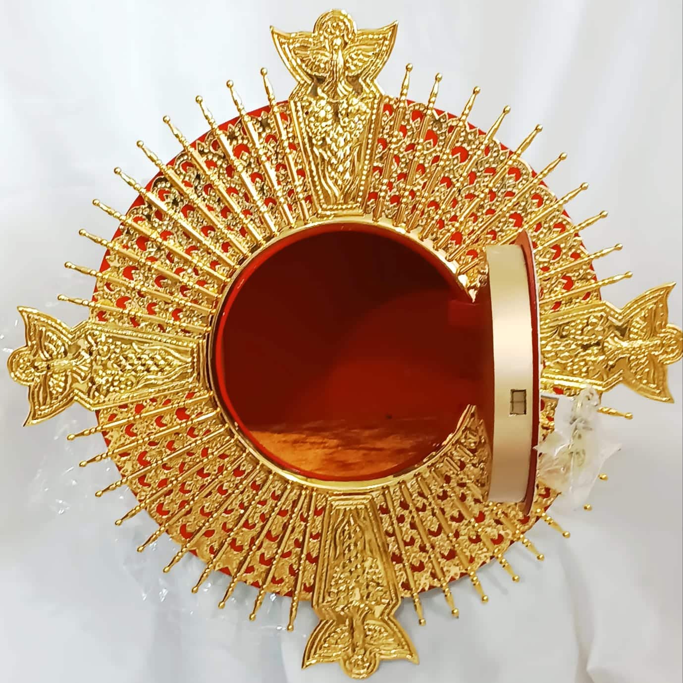 Feito em latão, com banho de ouro de 24k e a estampa da cesta de trigo e uva