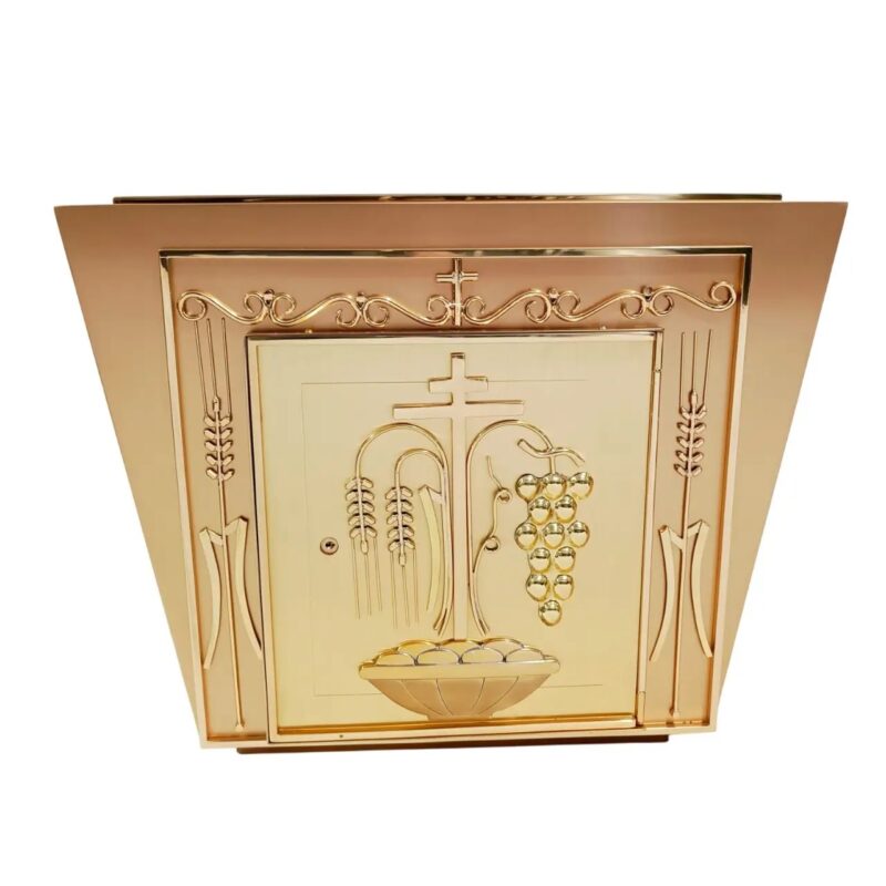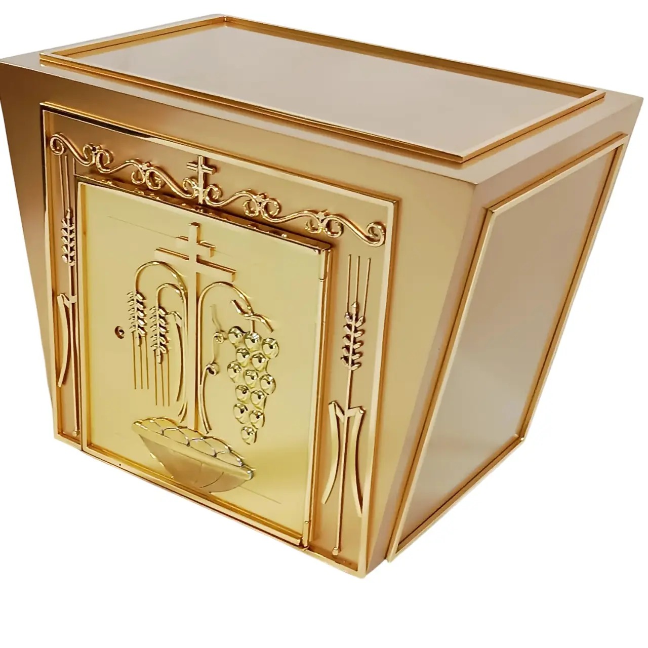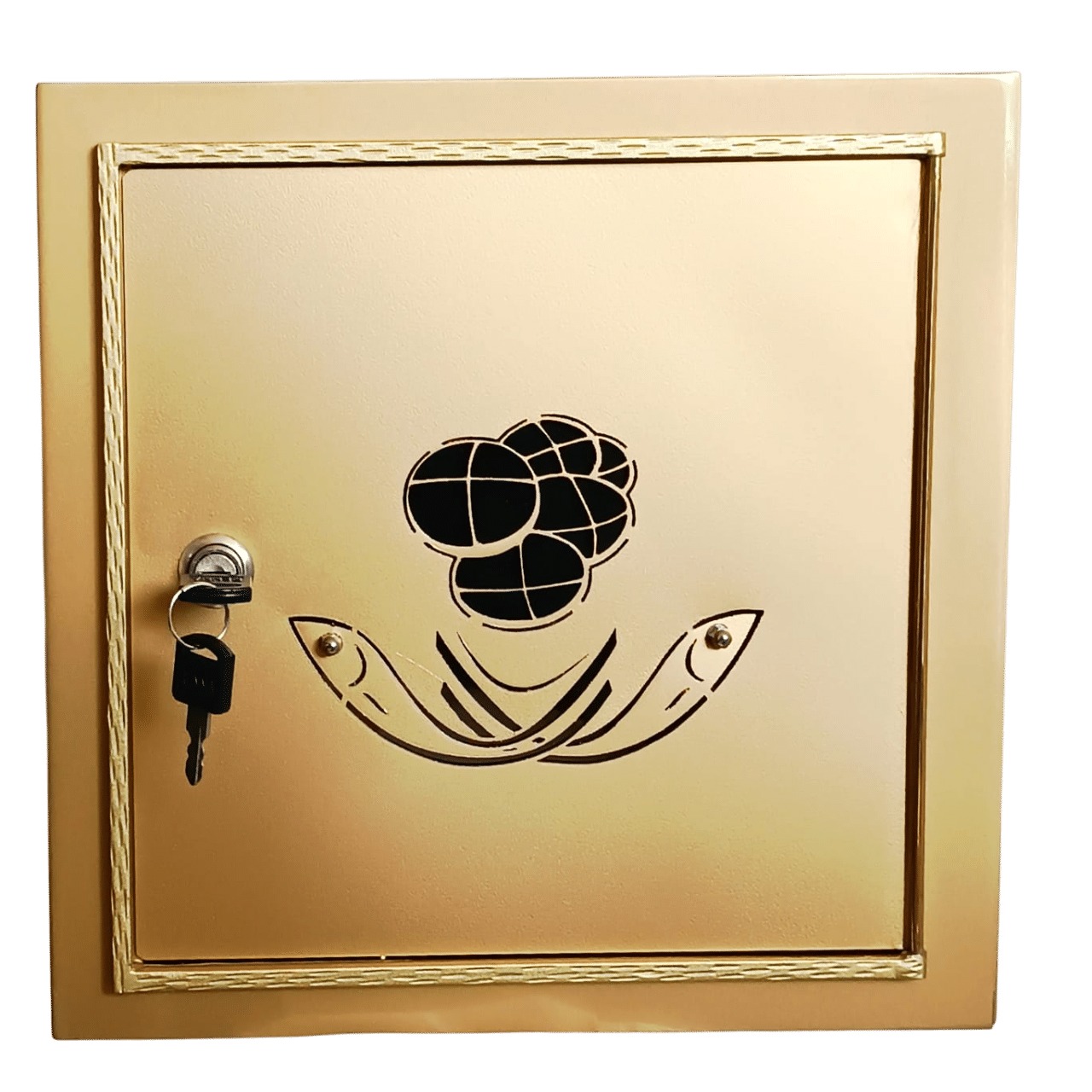 Características: Opção econômica, mais leve e acessível, com detalhe do cesto de pães e dois peixes na porta para simbolizar o sinal de Jesus. Protegido com verniz especial para maior durabilidade.