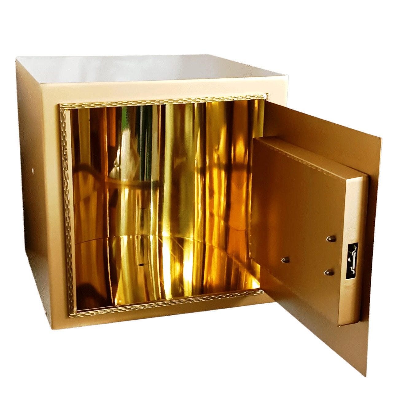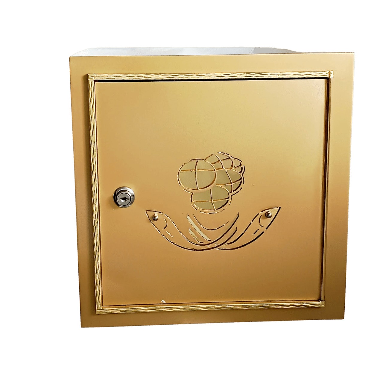 Características: Opção econômica, mais leve e acessível, com detalhe do trigo e da uva na porta para simbolizar a presença de Cristo pela Eucaristia. Protegido com verniz especial para maior durabilidade.