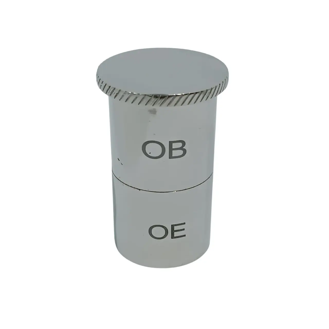 O fechamento dos vasos é com rosca e a capacidade é de 50 ml cada (OC – Crisma / OB – Batismo). – Ø 2,9×6 h. cm