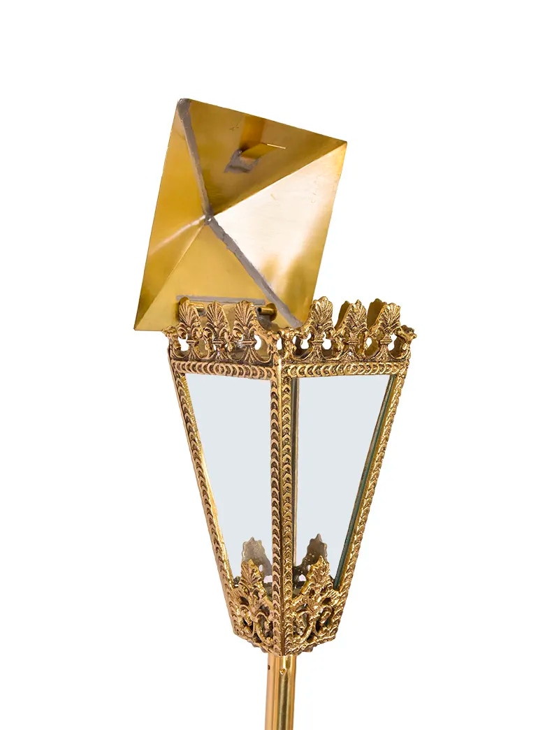 Fabricada em bronze fundido e com telhado. Não acompanha base.
