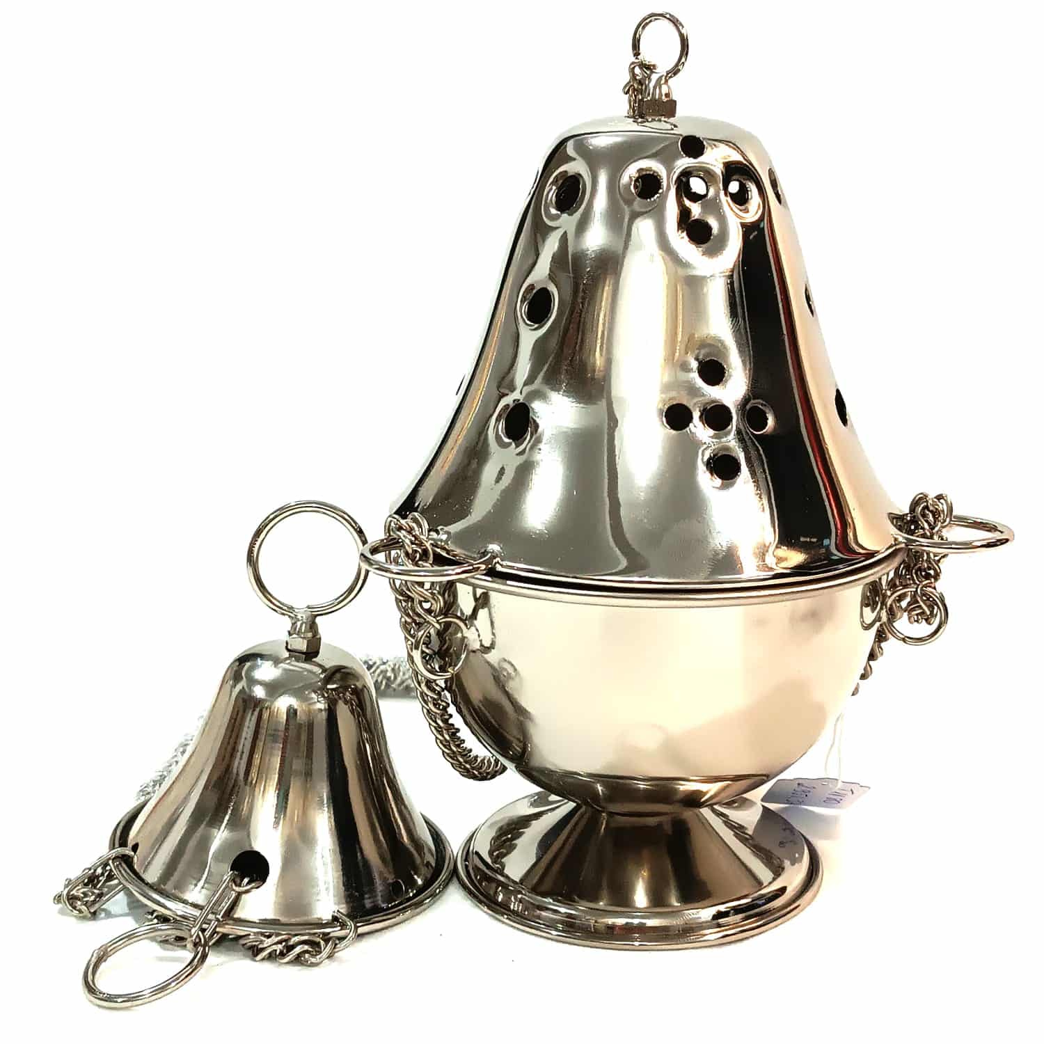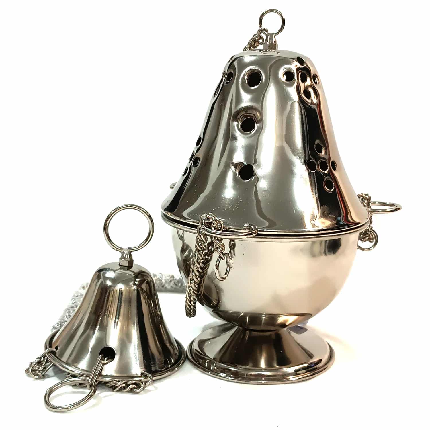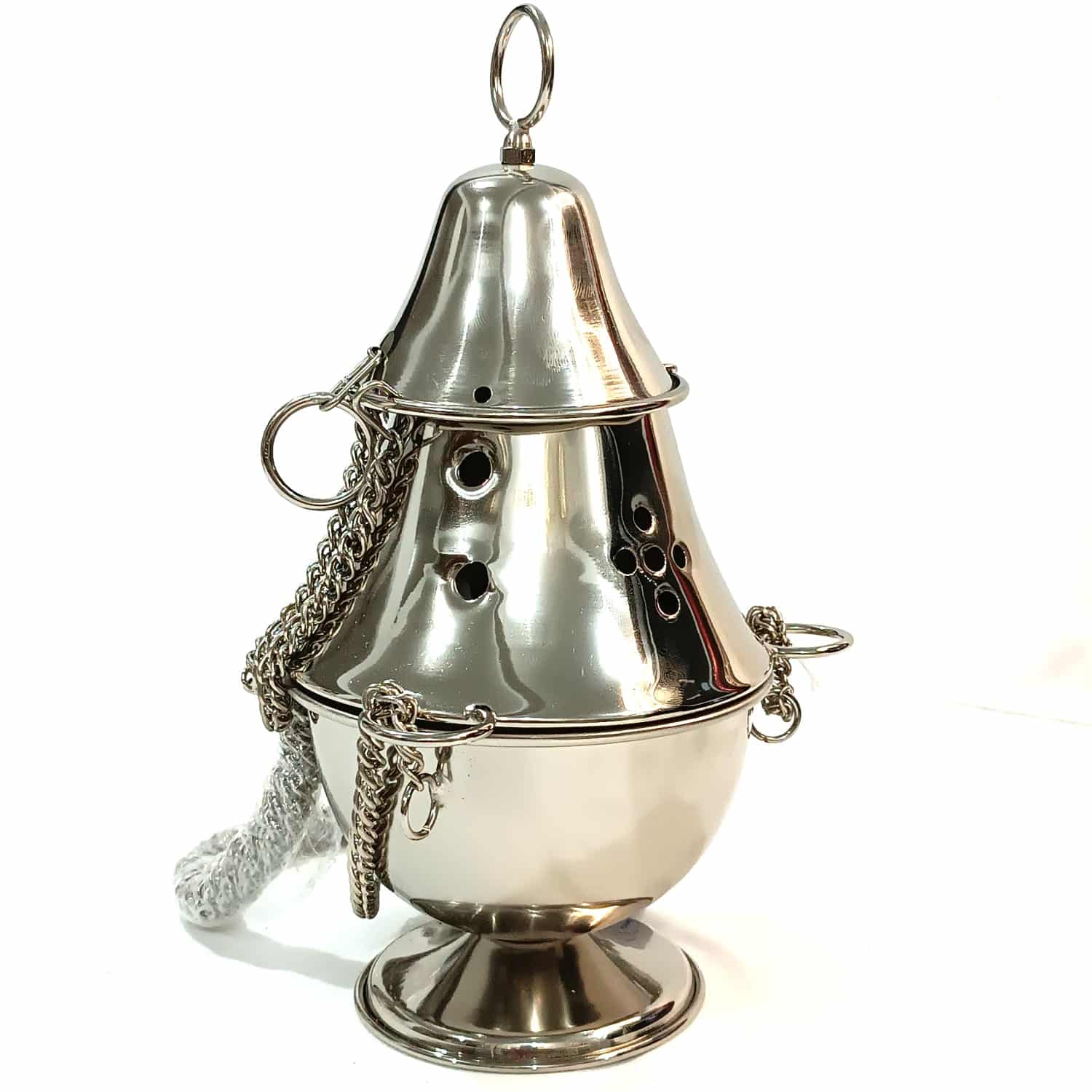 Turibulo Simples Italiano – 22 cm de altura, diâmetro 16cm e diâmetro interno 14 cm, diâmetro da base 10 cm e corrente de 75 cm