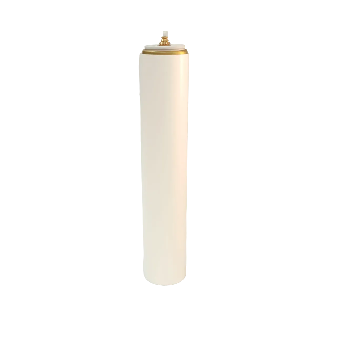 Vela de Fluído para Altar 30 x 6 cm. Vela produzida em PVC, para ser utilizado com fluido. O fluido é introduzido em um refil especial (resistente a altas temperaturas) com rosca onde é colocado o pavio. Aconselhamos o uso de um protetor de chama, para proteger a chama