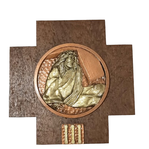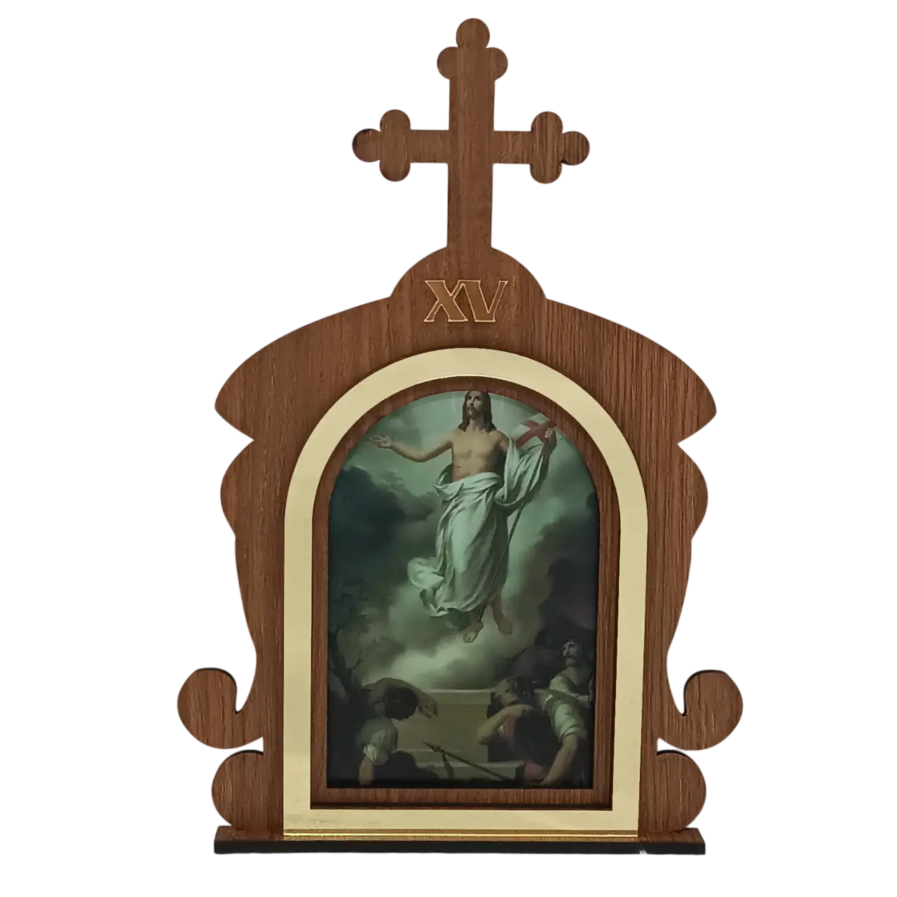 O acabamento em madeira confere sobriedade, resistência e elegância à peça, enquanto o formato clássico com cruz no topo reforça seu caráter litúrgico e devocional. Indicada tanto para uso individual quanto para composição completa das estações da Via-Sacra.